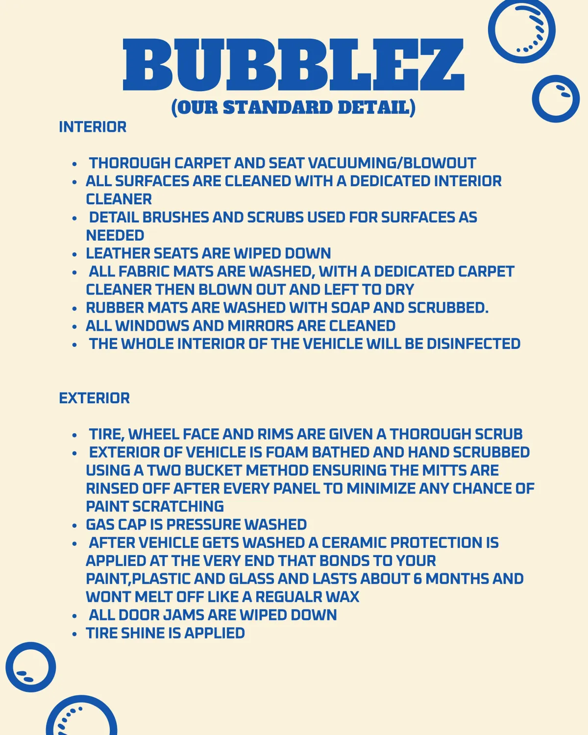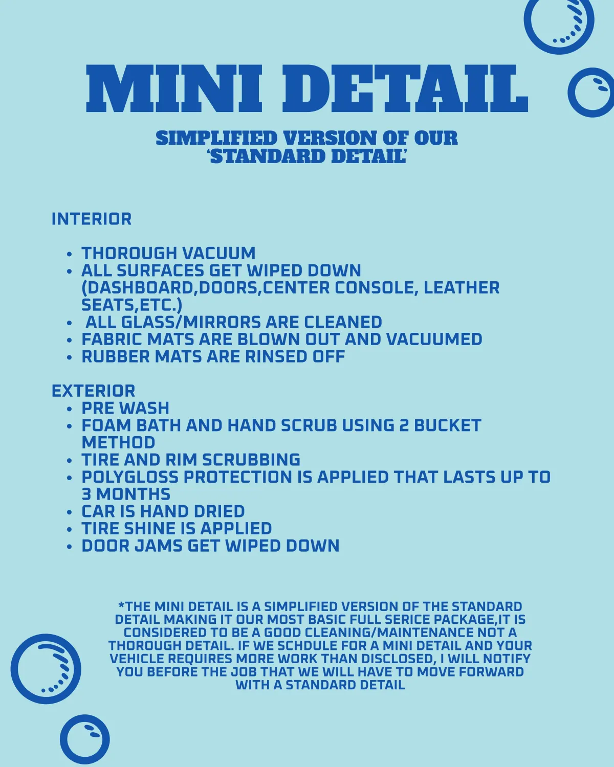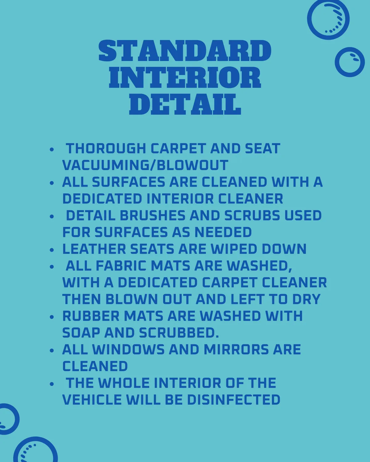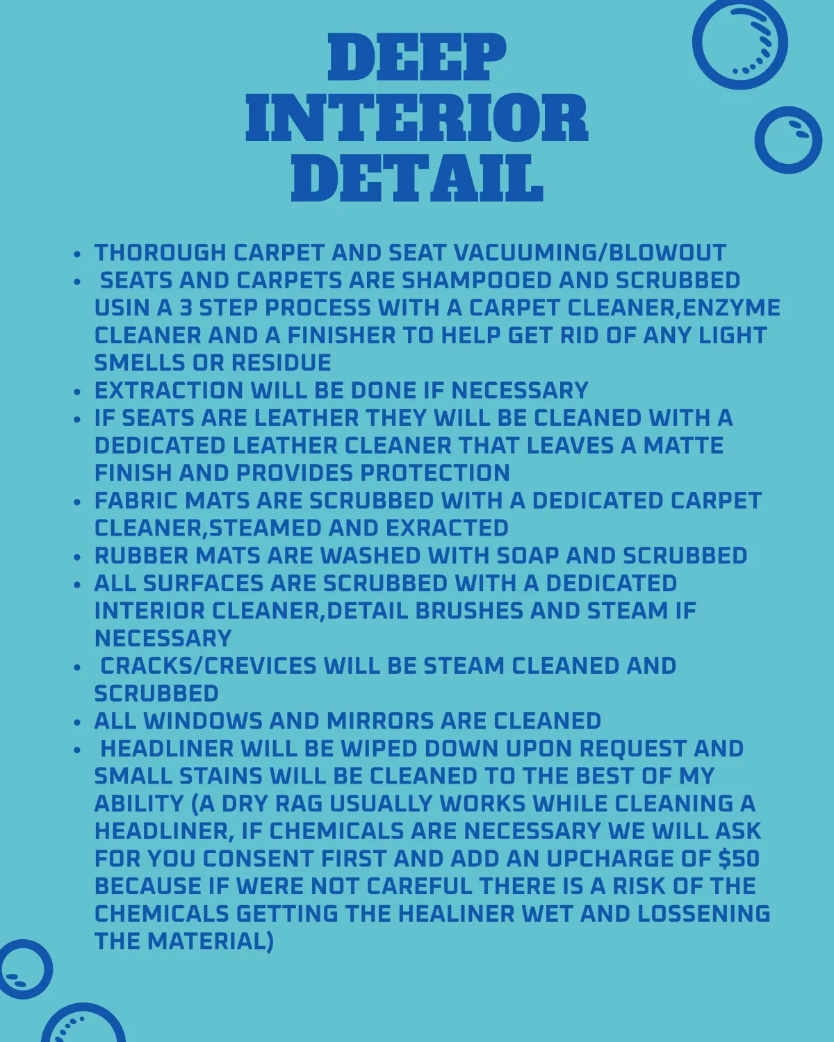 *Price is subject to change if the vehicle is a family vehicle due to amount of time extra cleaning may take